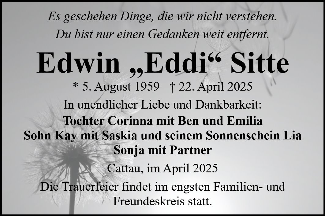 gestorben am 22. April 2025 in Südliches Anhalt OT Cattau