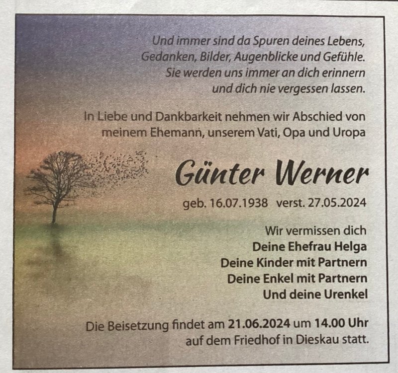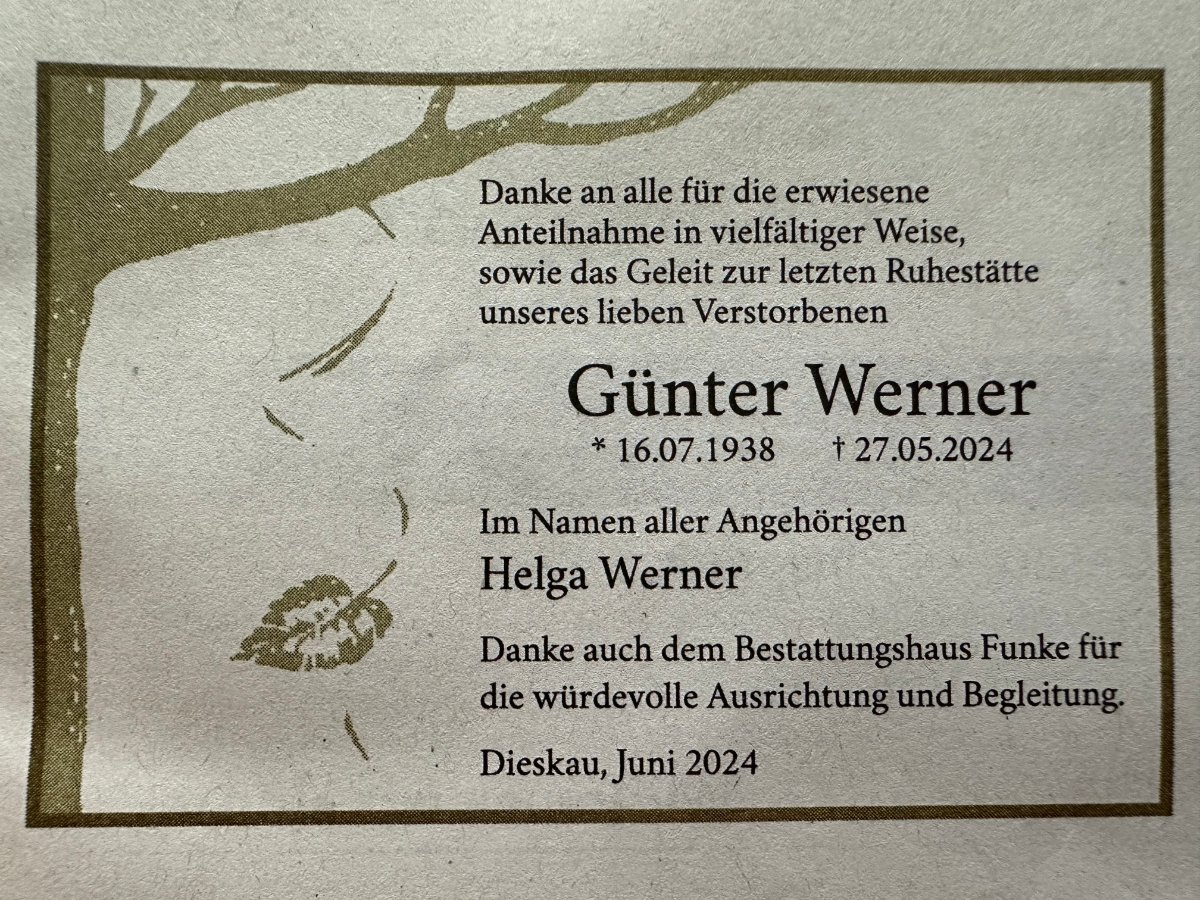 Günter Wernergestorben am 27. Mai 2024
