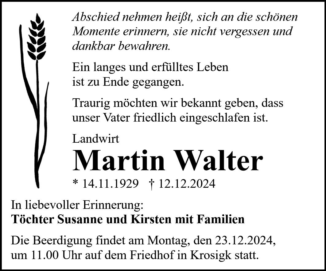 gestorben am 12. Dezember 2024 in Petersberg, OT Krosigk