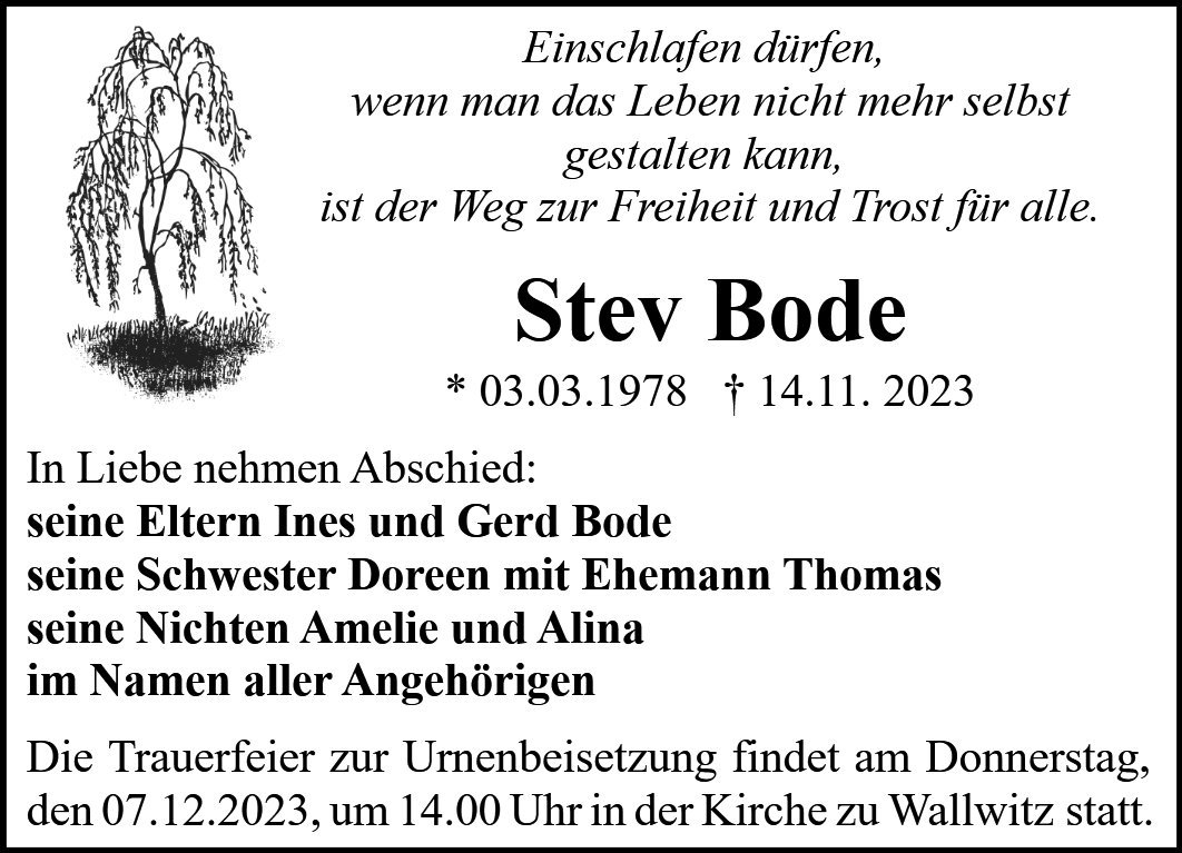 gestorben am 14. November 2023 in Petersberg OT Wallwitz